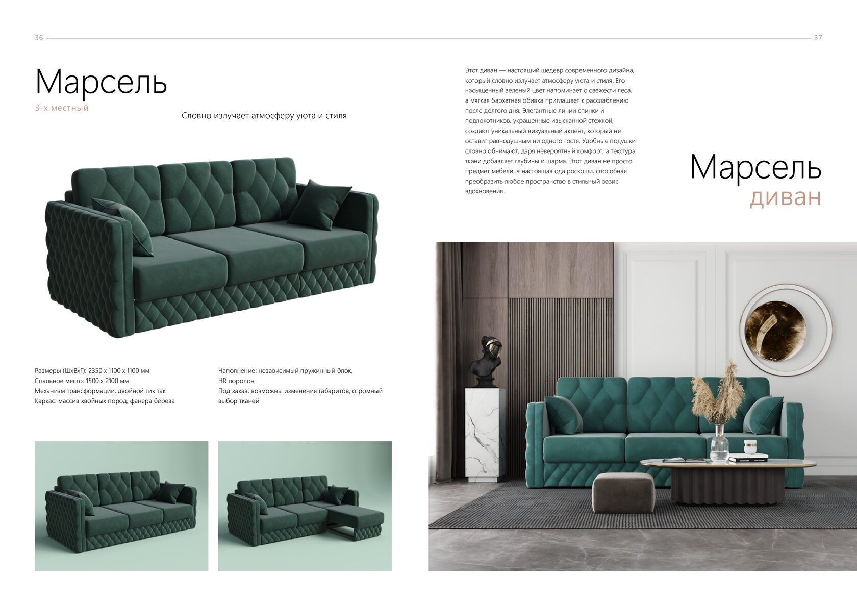 Наполнение: независимый пружинный блок, HR поролон. Под заказ: возможны изменения габаритов, огромный выбор тканей